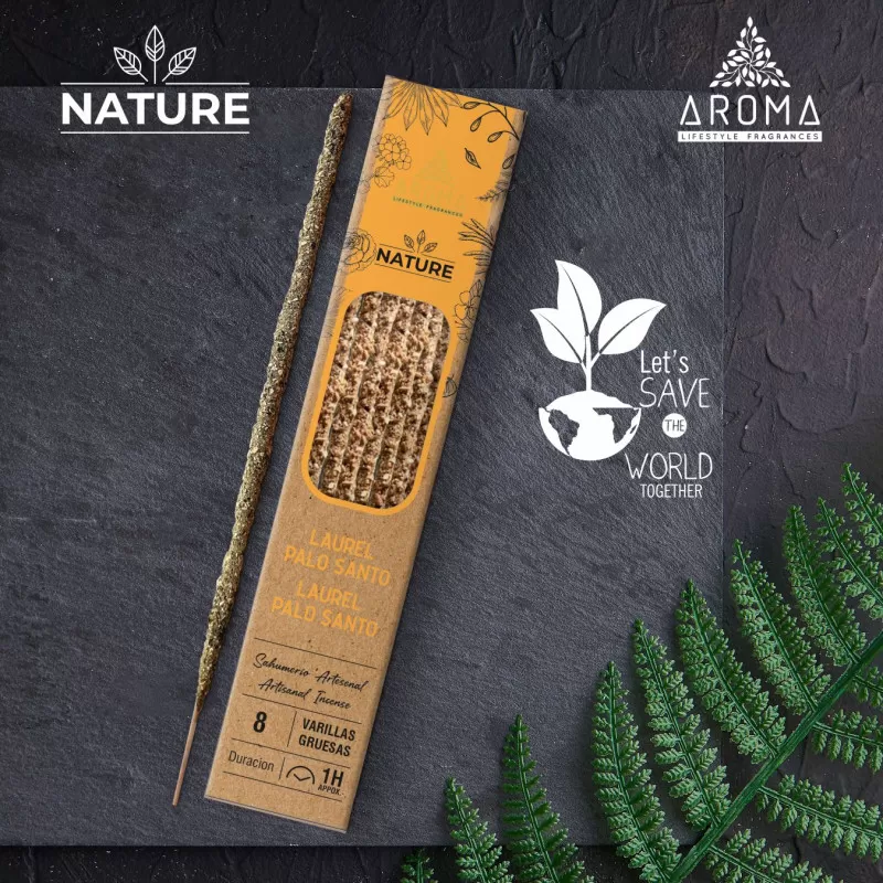 Kadzidełka patyczkowe z linii Nature – Laur i Palo Santo marki Aroma to wyjątkowa, naturalna kompozycja dwóch aromatów, które harmonizują energię i wprowadzają atmosferę oczyszczenia oraz wewnętrznej równowagi.