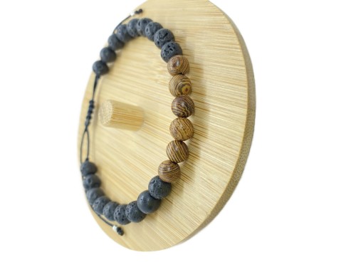 Bransoletka na rękę w połączeniu drewnianych okrągłych koralików i naturalnych kamieni Lawa!