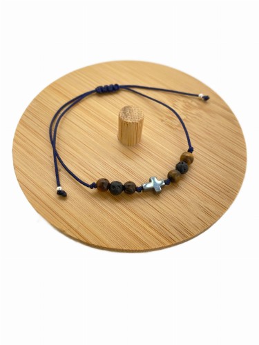 BRANSOLETKA naturalna Czarna krzyż tygrysie oko lawa