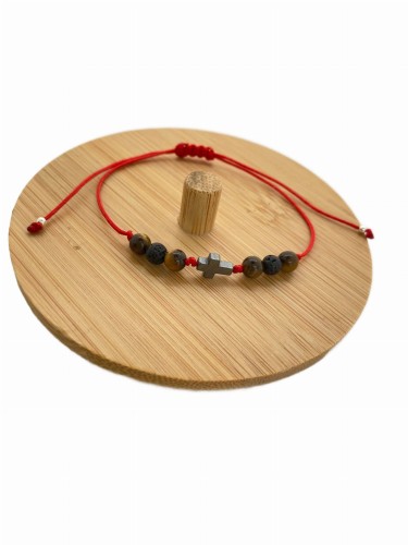 BRANSOLETKA naturalna Czerwona krzyż tygrysie oko lawa
