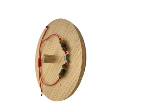 Starannie zrobiona ze sznurka Czerwonego nylonowego 0,8 mm i okrągłychkoralików tygrysie oko, lawa wulkaniczna o średnicy 4 mm oraz księżyca hematyt 8/5 mm.