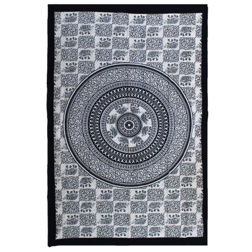 Bawełniana Narzuta/Ozdoba Ścienna - 130x200 cm - Słoń Mandala