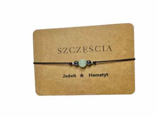 Bransoletka Szczęścia na sznurku Jadeit Hematyt