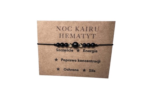 Bransoletka czarnym na sznurku Noc Kairu Hematyt