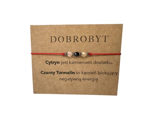 Bransoletka na Czerwonym sznurku Cytryn Czarny Turmalin