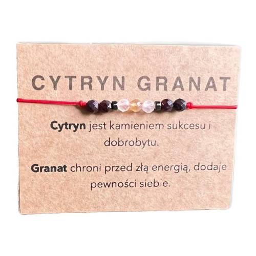 Minimalistyczna bransoletka na rękę w połączeniu kamieni naturalnych Cytryn i Granat!