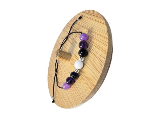 Minimalistyczna bransoletka na rękę w połączeniu kamieni naturalnych Fioletowy Angelit, Ametyst, Niebieski Sandstone i Biały Agat!