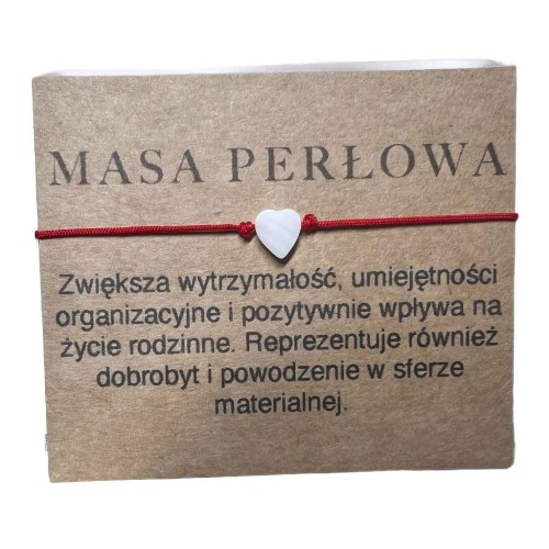 Bransoletka sznurek Czerwony Serce Masa Perłowa