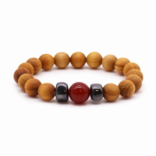 Potężny symbol siły i witalności - Bransoletka z Drewna Cedrowego Czakra Korzenia z czerwonym jaspisem.