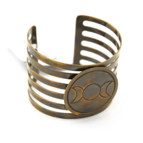 Ta mosiężna bransoletka z motywem Potrójnego Księżyca to symboliczny dodatek symbolizujący fazy przybywania, pełni i ubywania księżyca. Jest idealny dla osób, które pragną nawiązać kontakt z energią księżycową w swoich rytuałach.