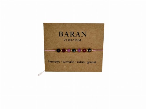Bransoletka zodiakalna BARAN na sznurku – Hematyt Turmalin Rubin Granat