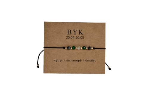 Bransoletka zodiakalna BYK na sznurku – Hematyt Cytryn Szmaragd