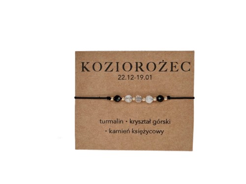 Bransoletka zodiakalna KOZIOROŻEC na sznurku – Kamień księżycowy Kryształ górski Turmalin