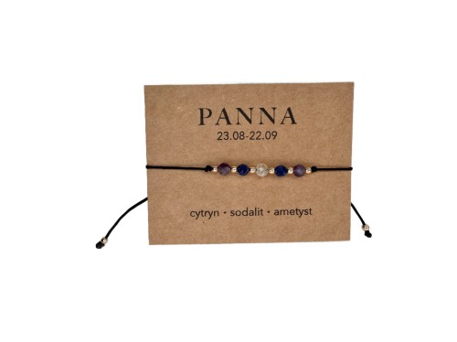Bransoletka zodiakalna PANNA na sznurku – Cytryn Sodalit Ametyst