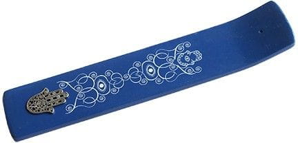 Szukasz prostego kadzidełka w efektownym niebieskim kolorze? Kadzidełka w kształcie nart to najprostszy rodzaj uchwytu. Półka jest wyposażona w otwór, w którym można umieścić kadzidełko pod takim kątem, aby popiół wpadł dokładnie do zamierzonego otworu. Ponadto kadzielnica wykonana jest z wysokiej jakości drewna i ręcznie wykańczana. Zawiera nadruk dekoracyjnych wzorów oraz metalowy symbol dłoni Fatimy.