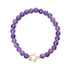 Elastyczna Bransoletka Ametyst 6 mm z Zawieszką Gwiazda