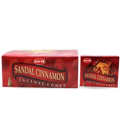 Kadzidełka Stożkowe Hem - Drzewo Sandałowi i Cynamon to słodko- korzenna przyjemnośc zapachowa. Zapach ten poprawia koncentrację i delikatnie stymuluje.