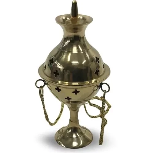 Ta kadzielnica ze złotej miedzi jest wykonana ręcznie. Uchwyt jest specjalnie zaprojektowany do bezpiecznego spalania kadzidełek lub ziarenek. Wyposażony jest w mosiężny łańcuszek. Pokrywa ma kształt kopuły. Stożki kadzidełka lub ziarna pali się wkładając je do palnika razem z płonącym węglem, a następnie zamykając go pokrywą. Dym przedostaje się przez ręcznie wycięte otwory.