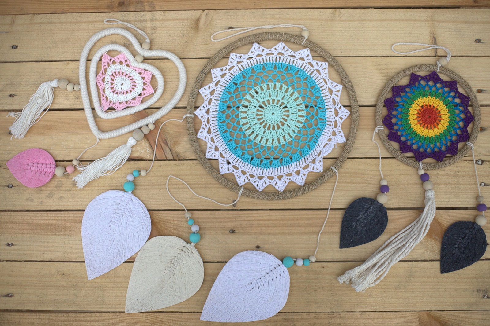 Łapacze Snów wykonane zostały z rattanu, bawełny i drewnianych koralików.