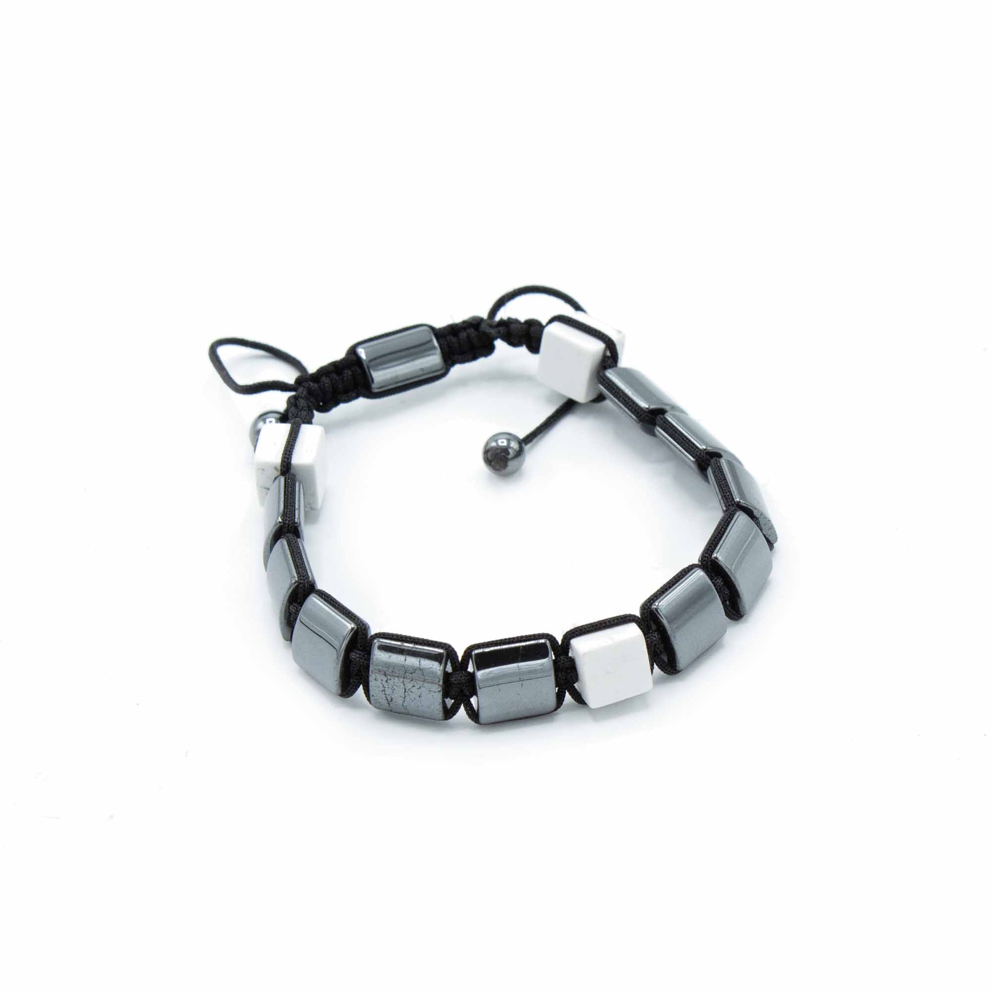 Magnetyczna Bransoletka Shamballa z Hematytu - Prostopadłościany z Białego Jaspisu