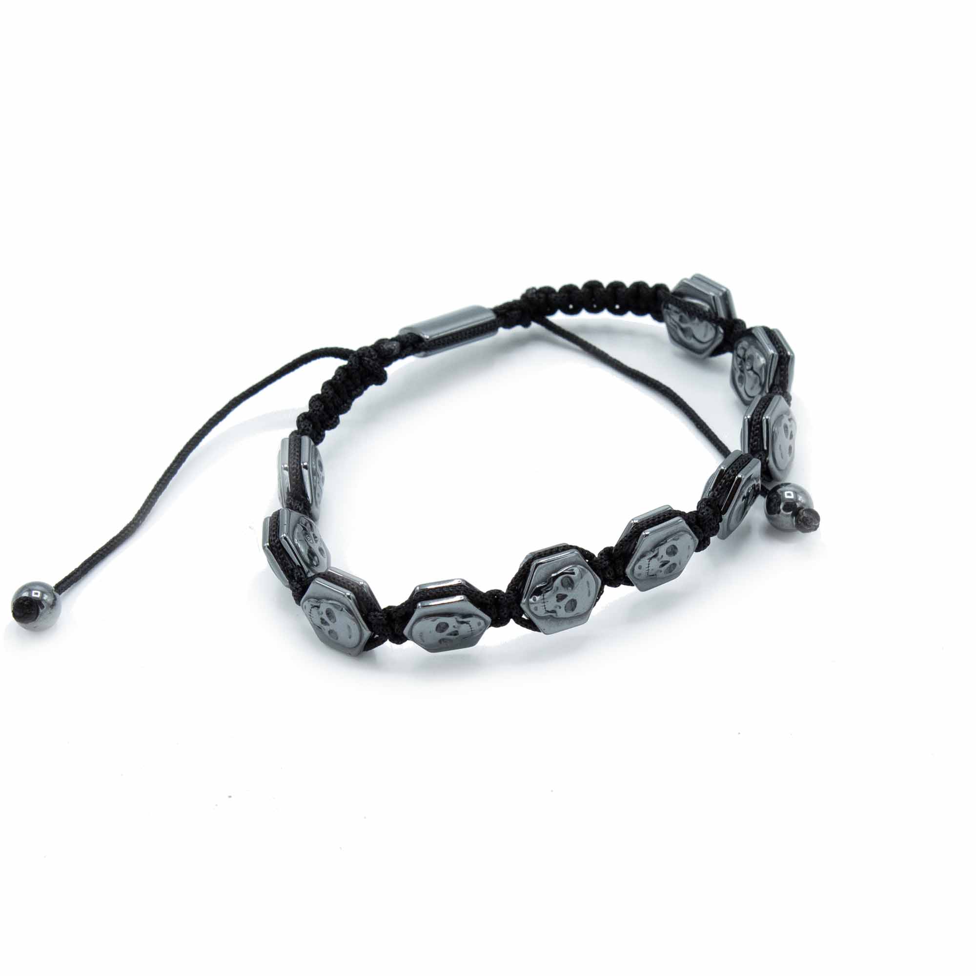 Magnetyczna Bransoletka Shamballa z Hematytu - Sześciokątne Czaszki