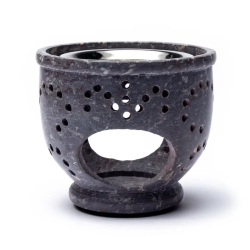 Mała lampa wykonana z ciężkiej jakości steatytu. Steatyt jest produktem naturalnym, jego kolory mogą się różnić od jasnych do ciemnych lub marmurkowe. Produkt jest wyposażony w sitko i tacę, dzięki czemu jest to kadzidło i lampka aromatyczna w jednym.