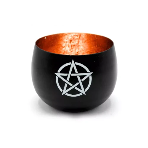 Ten świecznik typu tealight jest wykonany w dwóch kolorach. Zewnętrzna część jest matowo czarna, a lśniące wnętrze w kolorze miedzi tworzy piękny kontrast. Ten mały, okrągły świecznik ma kształt przeznaczony na pojedynczą świeczkę typu tealight. Gdy świeca jest zapalona, odbija ciepły metaliczny kolor wewnątrz, tworząc miękki i spokojny blask.