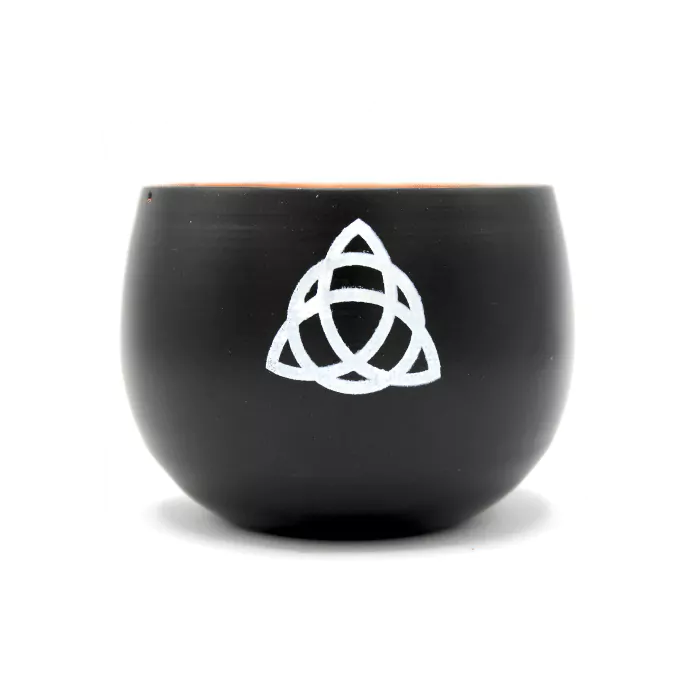 Ta miska to coś więcej niż tylko świecznik. Ozdobiona Triquetrą, symbolem o duchowym znaczeniu, i stworzona, aby pomóc przynieść spokój . Została stworzona, aby ulepszyć praktyki Wiccan lub wyznawców dowolnej wiary , wspierając duchową podróż, która angażuje serce i ducha.