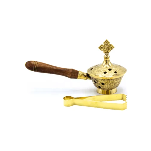 Mosiężna kadzielnica z rączką - zestaw ze szczypcami