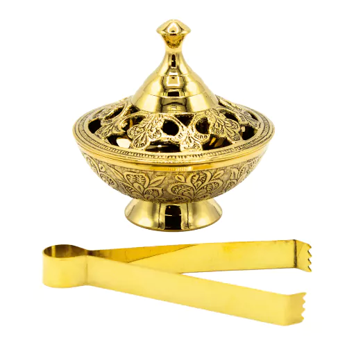 Mosiężna kadzielnica - zestaw ze szczypcami
