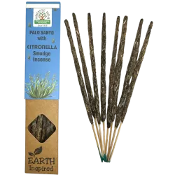 Kadzidełka Inspirowane Ziemią Palo Santo i Citronella to naturalne oczyszczenie i cytrusowa świeżość – 25 g ręcznie robionego, organicznego kadzidła.