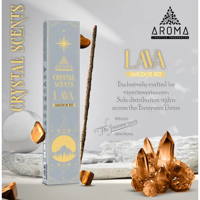Kadzidełka patyczkowe z linii Crystal – Lawa marki Aroma to wyjątkowe połączenie głębokiego, intensywnego aromatu z energią naturalnego minerału, które pomaga stworzyć atmosferę ochrony, siły i ugruntowania.