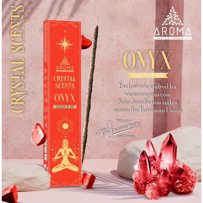 Kadzidełka patyczkowe z linii Crystal – Onyks marki Aroma to wyjątkowe połączenie głębokiego, oczyszczającego aromatu z energią potężnego naturalnego minerału, które pomaga stworzyć atmosferę ochrony, wewnętrznej siły i równowagi emocjonalnej.