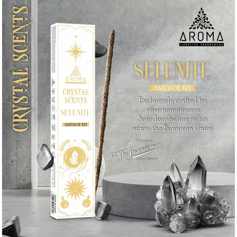 Kadzidełka patyczkowe z linii Crystal – Selenit marki Aroma to wyjątkowe połączenie subtelnego, oczyszczającego aromatu z wysoką wibracją naturalnego minerału, które pomaga stworzyć atmosferę spokoju, jasności i duchowej harmonii.