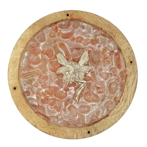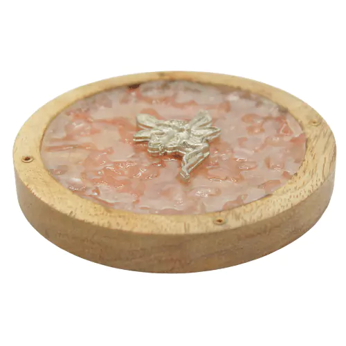 Okrągła podstawka do kadzidełek z kawałkami kwarcu różowego