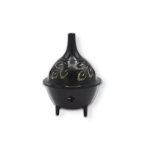 Jest specjalnie zaprojektowany do bezpiecznego spalania kadzidełek lub ziaren. To prosty design w błyszczącym kolorze. Pokrywka jest zdejmowana. Stożki lub ziarenka kadzidła palisz wkładając je do palnika razem z rozpalonym węglem, a następnie przykrywasz. Święty dym znajdzie drogę przez dziury. Zaletą używania kadzidełek jest to, że możesz mieszać zapachy według własnego gustu.