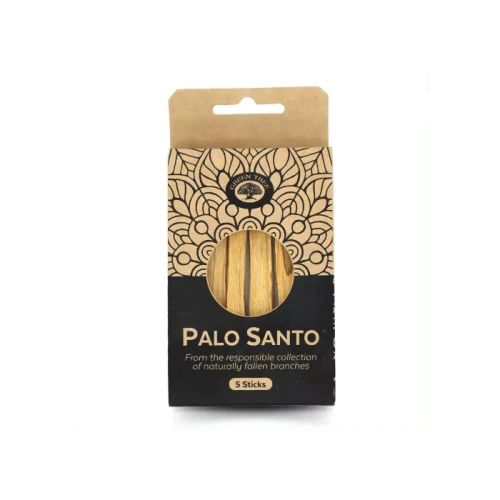 Każde pudełko zawiera pięć cienkich patyczków Palo Santo, znanego ze swojego słodkiego, drzewnego aromatu, który uspokaja umysł, oczyszcza ducha, oczyszcza przestrzenie z negatywnej energii i zaprasza pozytywność i spokój do otoczenia Twoich klientów. Zgodnie z naszymi wartościami etycznego pozyskiwania, nasze patyczki Palo Santo są odpowiedzialnie zbierane z naturalnie opadłych gałęzi w lasach Ameryki Południowej.