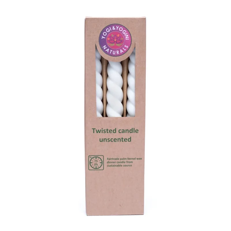 Skręcona świeca obiadowa, wykonana z trwałego wosku z pestek palmowych.