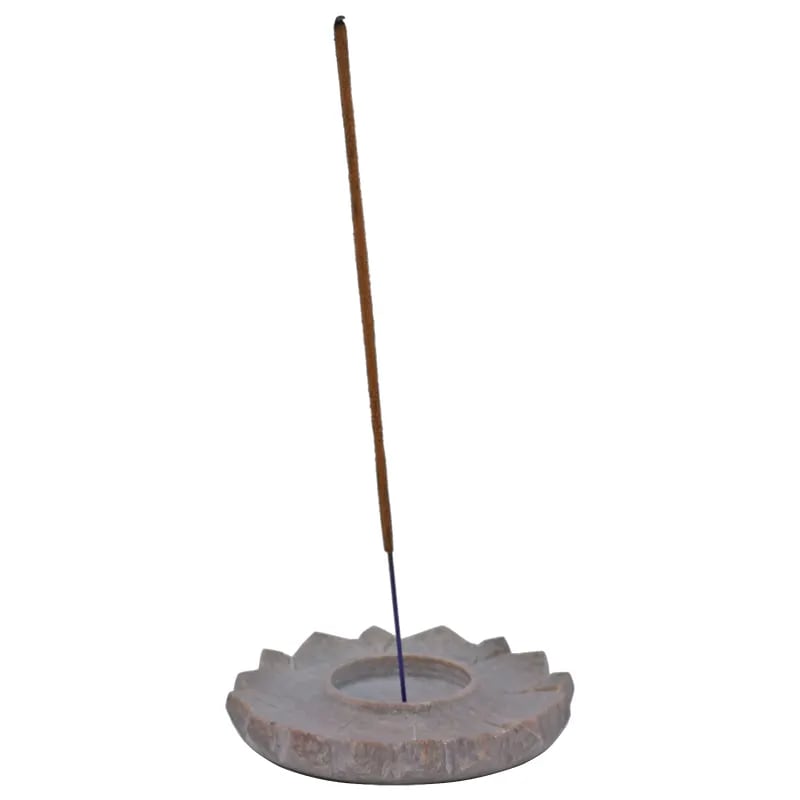 Wykonany z polerowanego steatytu w kształcie lotosu. Nadaje się zarówno do palenia świecy jak i kadzidełka.