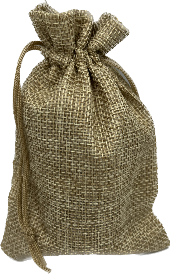 Torba prezentowa wykonana z naturalnej juty oraz łatwym zamykaniem za pomocą sznurka.