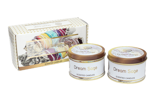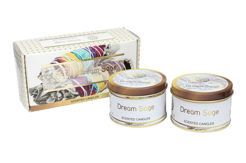 Zapakowany w pudełko zawierające dwie świeczki w blaszanym słoiczku z nakrętką.