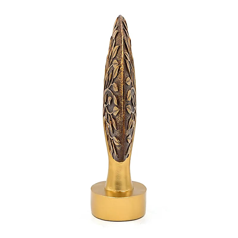 Złota ozdoba Drzewo Życia z trwałej żywicy poliestrowej, z finezyjnymi detalami gałęzi i liści. Drzewo Życia symbolizuje wzrost, łączność i harmonię, stanowiąc znaczący akcent dekoracyjny w domu, biurze lub sklepie.